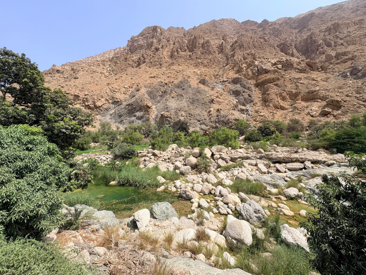 Wadi Shab è speciale perché qui l’acqua dolce proveniente dalle montagne incontra quella salmastra dell’oceano, creando un paesaggio da cartolina.